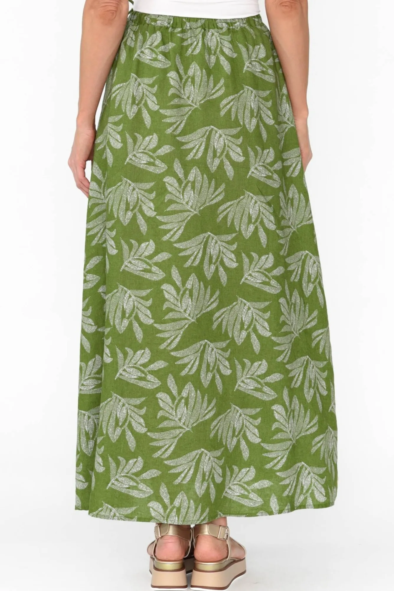 Skirts<Stella Gemma Giana Green Palm Linen Maxi Skirt