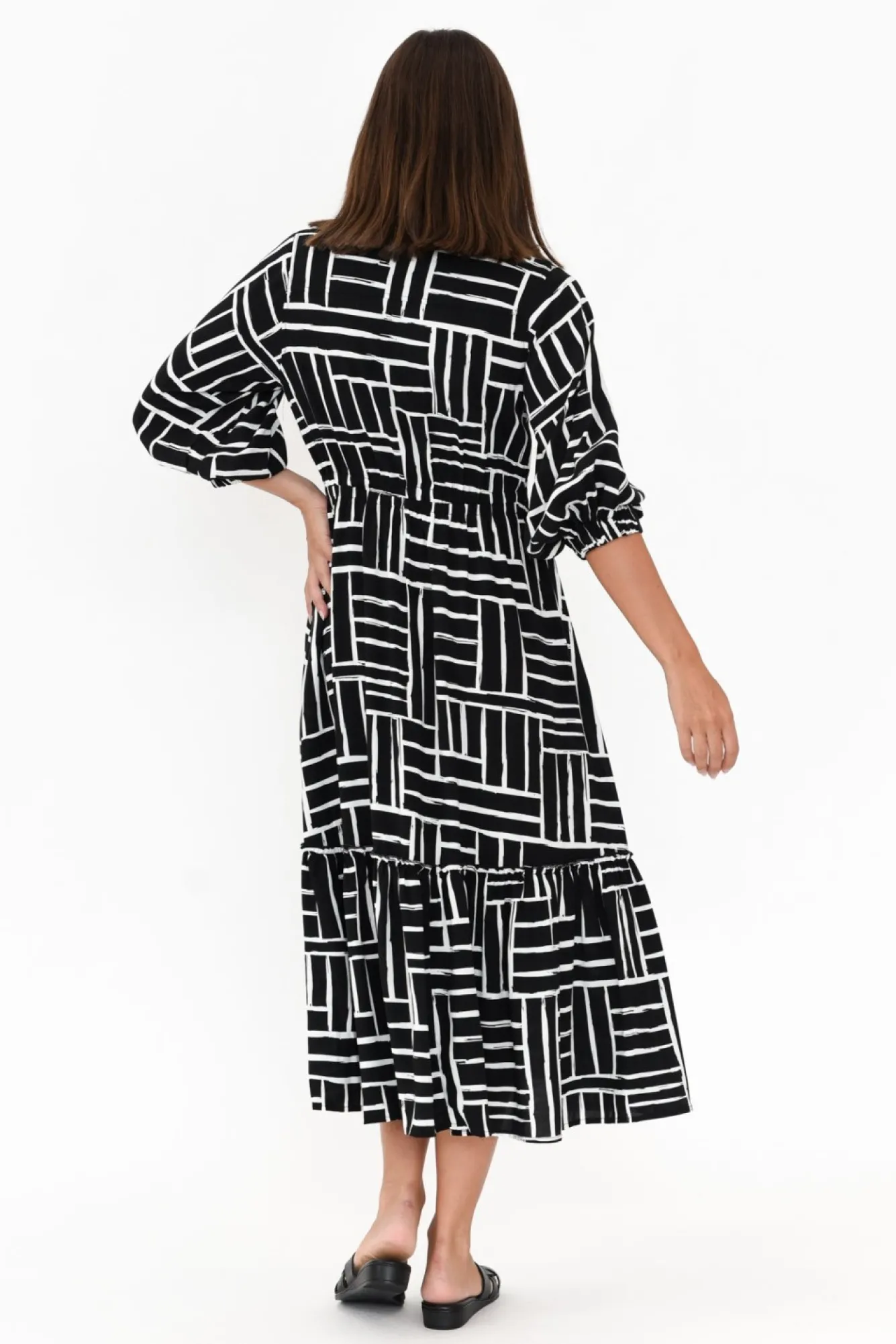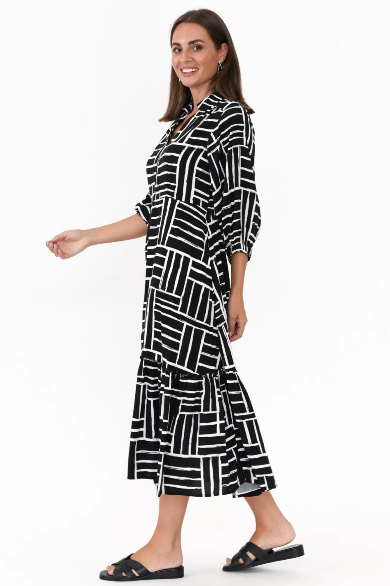 Sleeved Dresses<Silver Wishes Imari Black Stripe Collared Dress