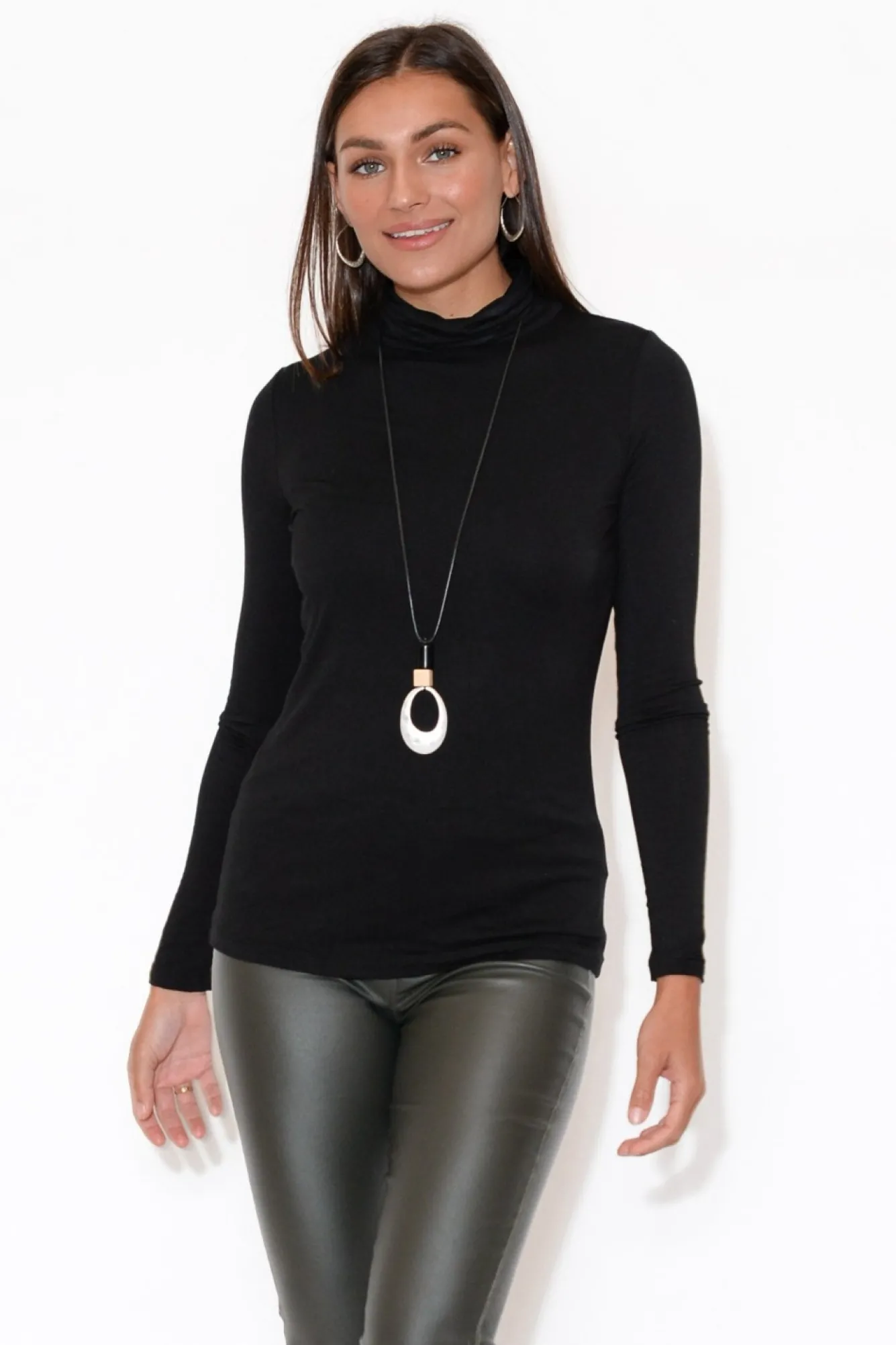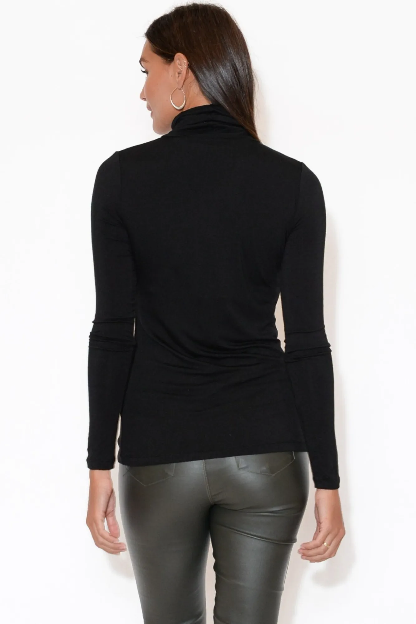 Fit: True To Size. Refer To Size & Fit Tab Below For Specific Size RecommendationNNfabric: 93% Bamboo Viscose, 7% SpandexNlightweight Bamboo Style Characterised By Super Soft Stretch And BreathabilityNblack Bamboo Is Upf50 Making This Style Perfect For Sunny DaysNhigh, Folded Turtleneck DesignNfull Length SleevesNfitted Silhouette – Figure Hugging In All The Right Spots!Ncrisp, Straight HemlineNtop Falls To The HipNNNcare: Cool Gentle Machine Wash RecommendedNNcolour: Staple Black Shade