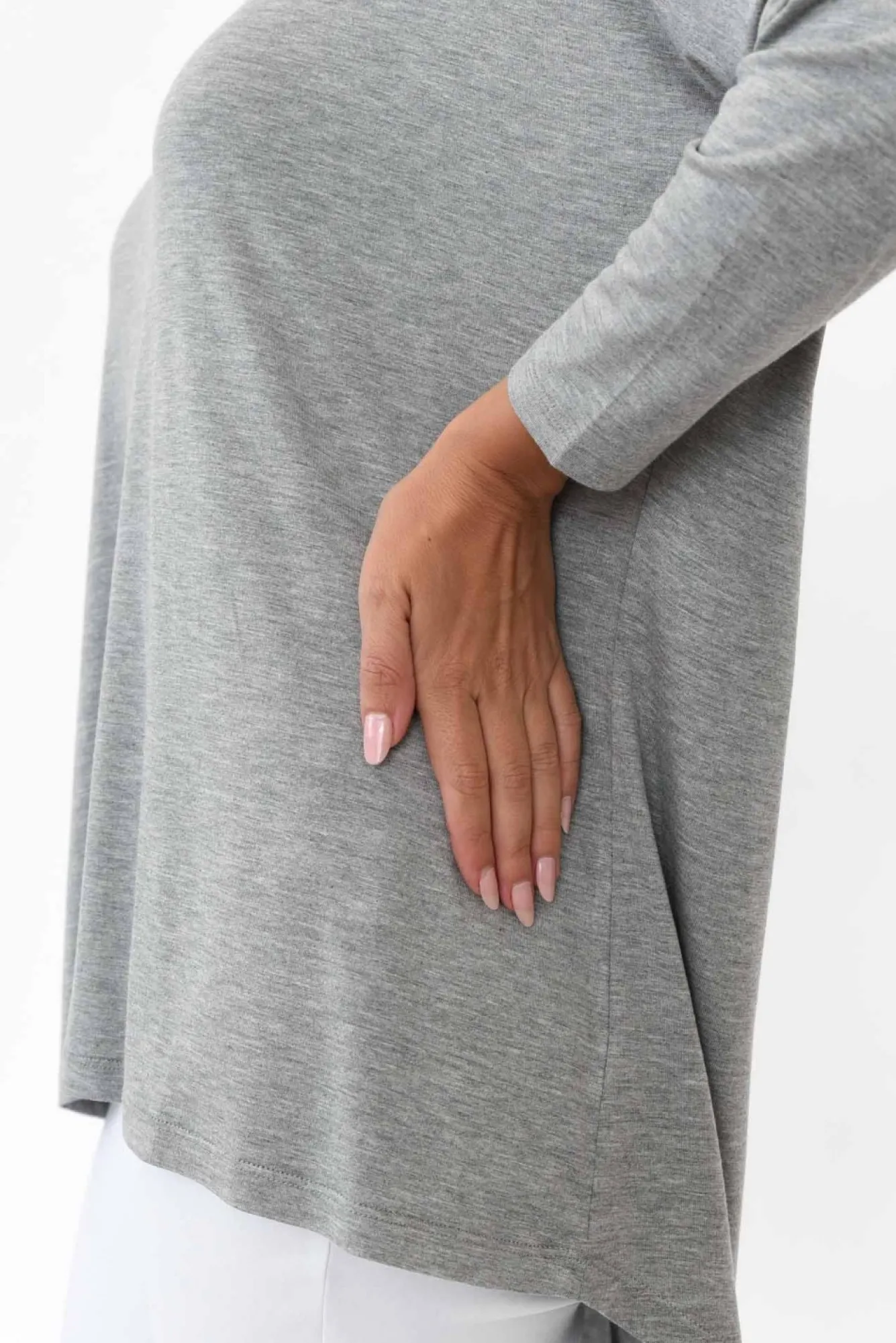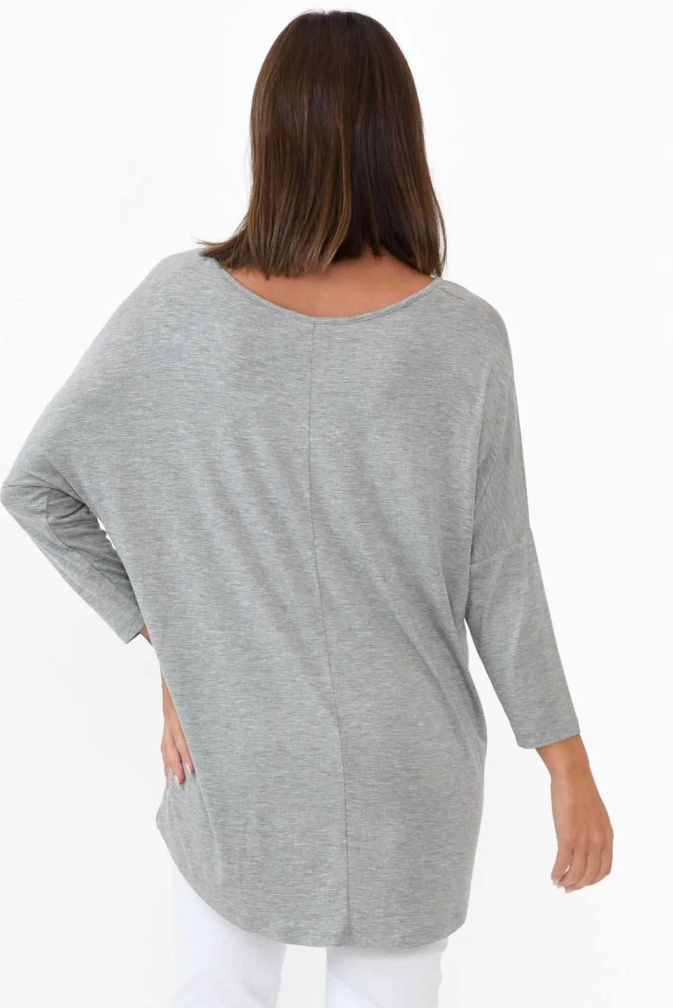 Fit: Oversized. Refer To Size & Fit Tab Below For Specific Size RecommendationNNfabric: Viscose/ElastaneNan Everyday Must-Have Crafted From Lightweight, Soft And Stretchy Fabric Nwide Round Neckline Falls Below The CollarbonesNN3/4 Length Tapered Sleeves And Drop Shoulder SeamNcomfortable Relaxed FitNNhi-Lo Hemline Falls To The HipNNcare: Cool Gentle Hand Wash RecommendedNNcolour: Versatile Grey Marle Shade
