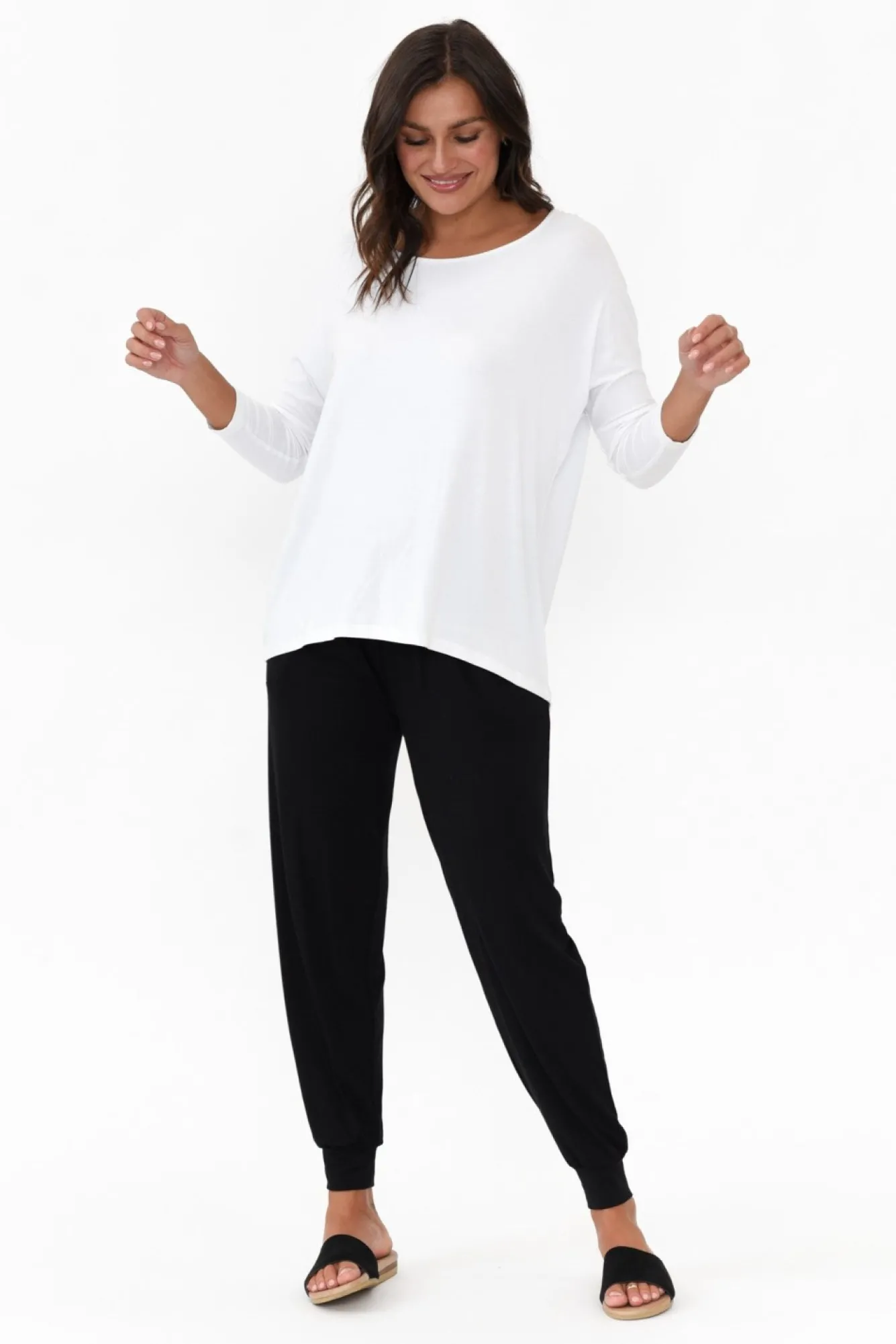 Fit: Oversized. Refer To Size & Fit Tab Below For Specific Size RecommendationNNfabric: Viscose/ElastaneNstyle With Ease In This Lightweight, Soft And Ultra-Stretchy Fabric Blend Made For Everyday WearNNslightly Sheer Fabric, We Recommend Wearing Nude UndergarmentsNfeatures A Wide Round NecklineNwith 3/4 Length Tapered Sleeves And Drop Shoulder SeamNsignature Relaxed FitNNclassic, Hi-Lo Hemline Falls To The HipNNcare: Cool Gentle Hand Wash RecommendedNNcolour: Timeless White