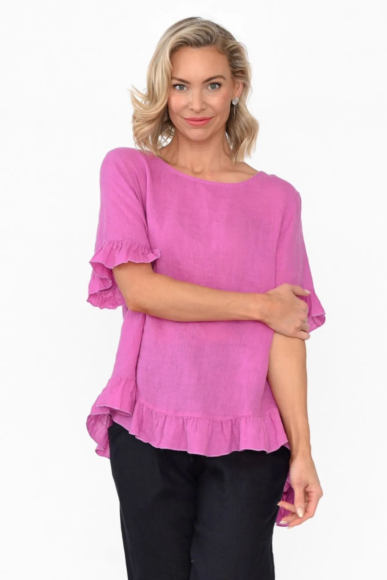 Sleeved Tops<Cali and Co Genevieve Pink Linen Frill Top