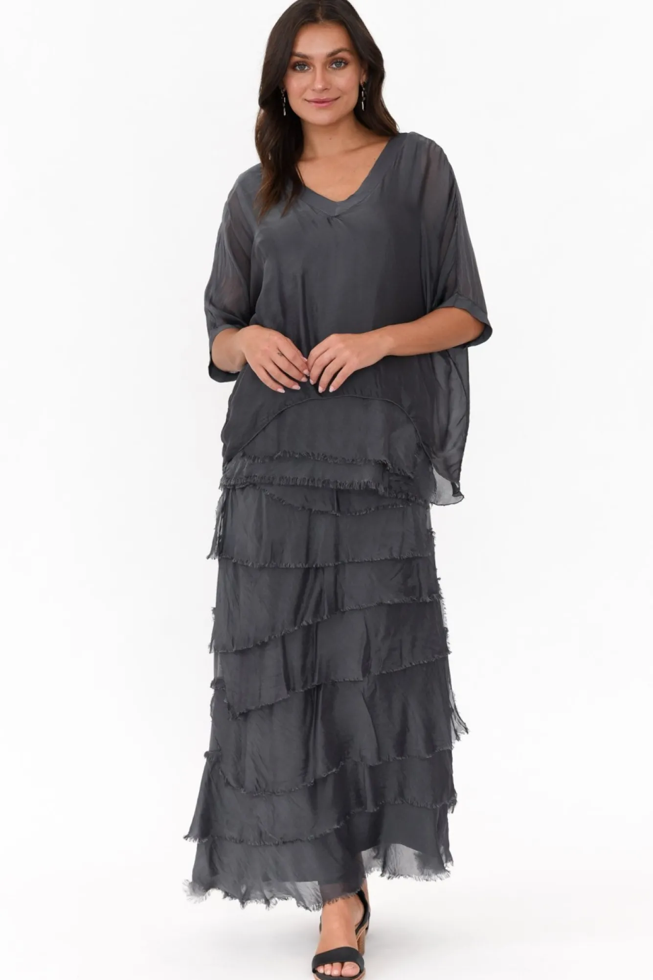 Sleeved Tops<Italian Closet Ranatia Charcoal Silk Batwing Top