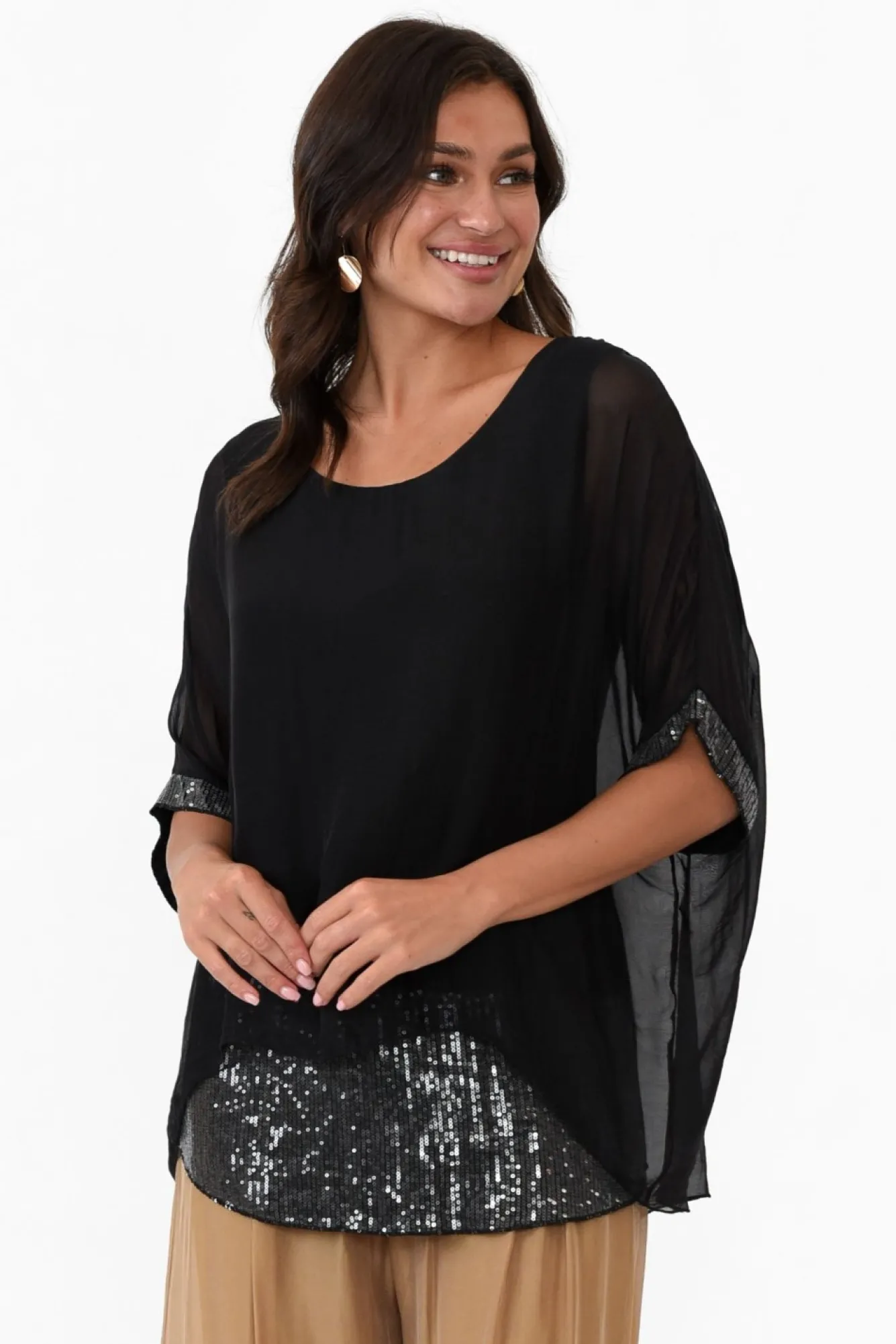 Be the first to review “Sleeved Tops<La Strada Parker Black Silk Sequin Top” Cancel reply