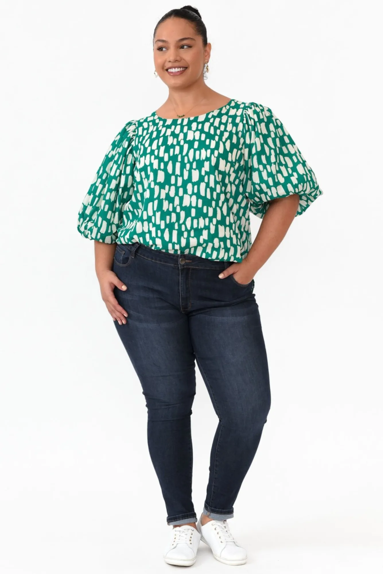 Be the first to review “Sleeved Tops<New U Collection Amsterdam Green Fleck Puff Sleeve Top” Cancel reply