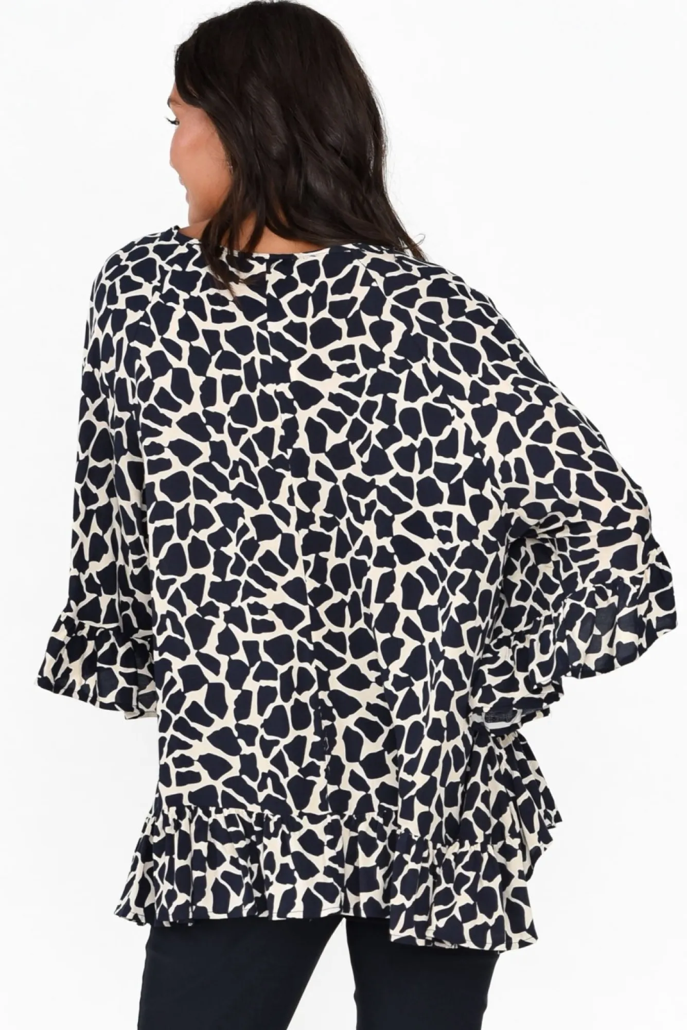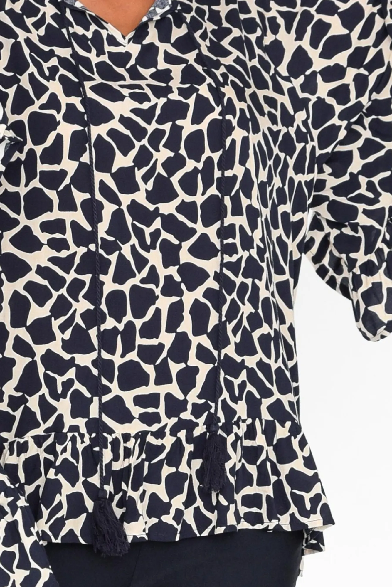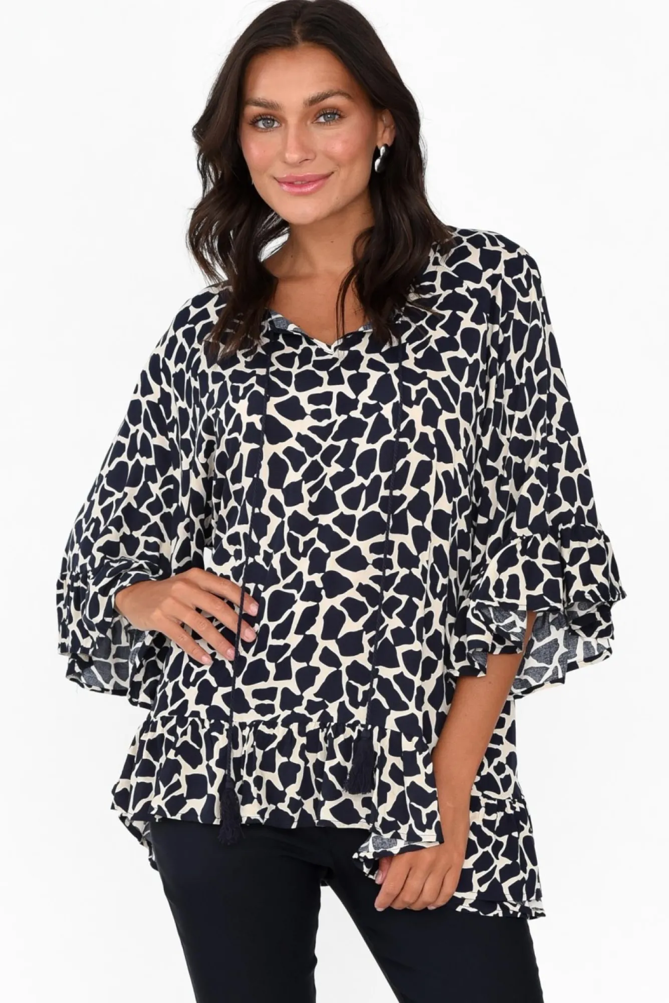 Sleeved Tops<New U Collection Chase Navy Abstract Tassel Ruffle Top