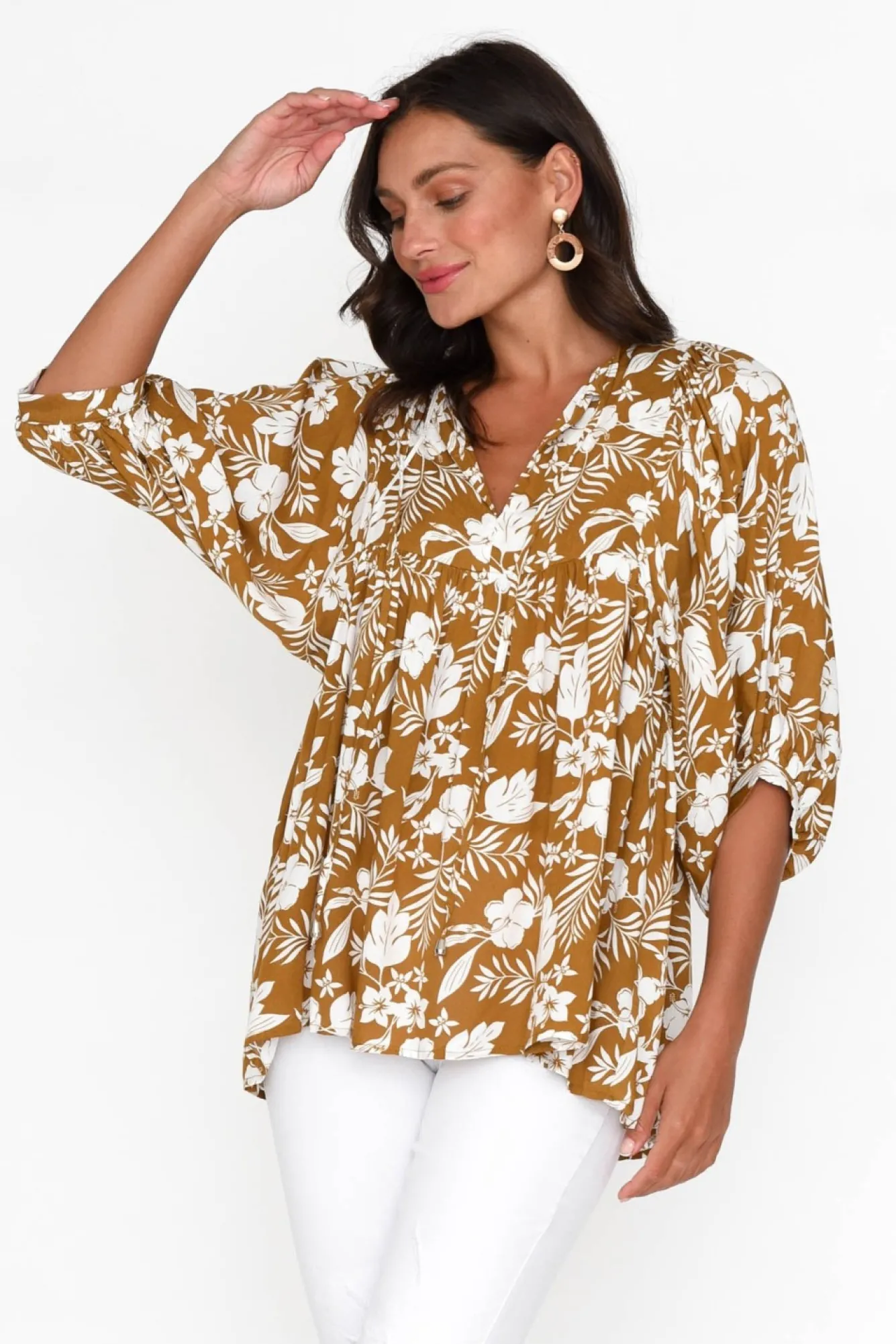 Sleeved Tops<New U Collection Marylee Mustard Garden Gathered Top