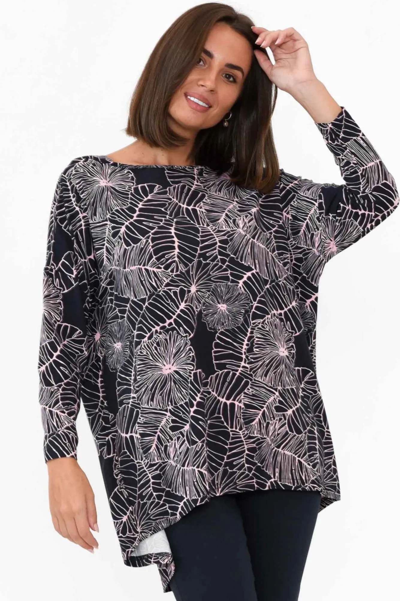 Fit: True To Size. Refer To Size & Fit Tab Below For Specific Size RecommendationNNfabric: 95% Bamboo Viscose, 5% SpandexNlightweight, Breathable And Stretchy Bamboo Jersey FabricNNboatneck Design Enhanced By Added Fabric Detail To Hide Bra Straps NNfull-Length Sleeves Featuring Drop Shoulder Seam NNeffortless Relaxed Silhouette Combines Comfort And StyleNhi-Lo Hemline Falls Below Hip Length NNNcare: Cool Gentle Machine Wash RecommendedNNcolour: Intricate Lilac Garden Print Over A Deep Navy Base