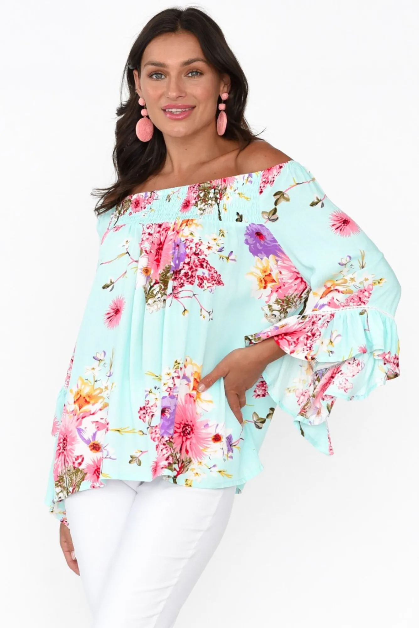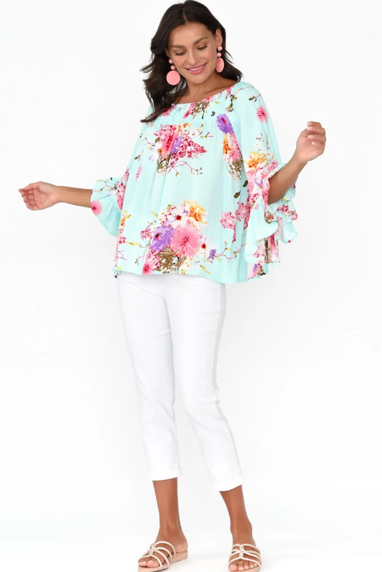 Fit: True To Size. Refer To Size & Fit Tab Below For Specific Size RecommendationNNfabric: 100% RayonNa Fun And Comfortable Lightweight Top In A Lovely Soft FabricNcan Be Worn Off The Shoulder Or Pulled Up To Create A Scoop NecklineNthree-Quarter Statement Sleeves With Frill Cuff That Cascades Down The ArmNNsoft A-Line SilhouetteNstraight Hem Falls To Hip-Skimming LengthNNcare: Cool Gentle Machine Wash RecommendedNNcolour: Stunning Sky Blue Base With A Dainty Floral Print