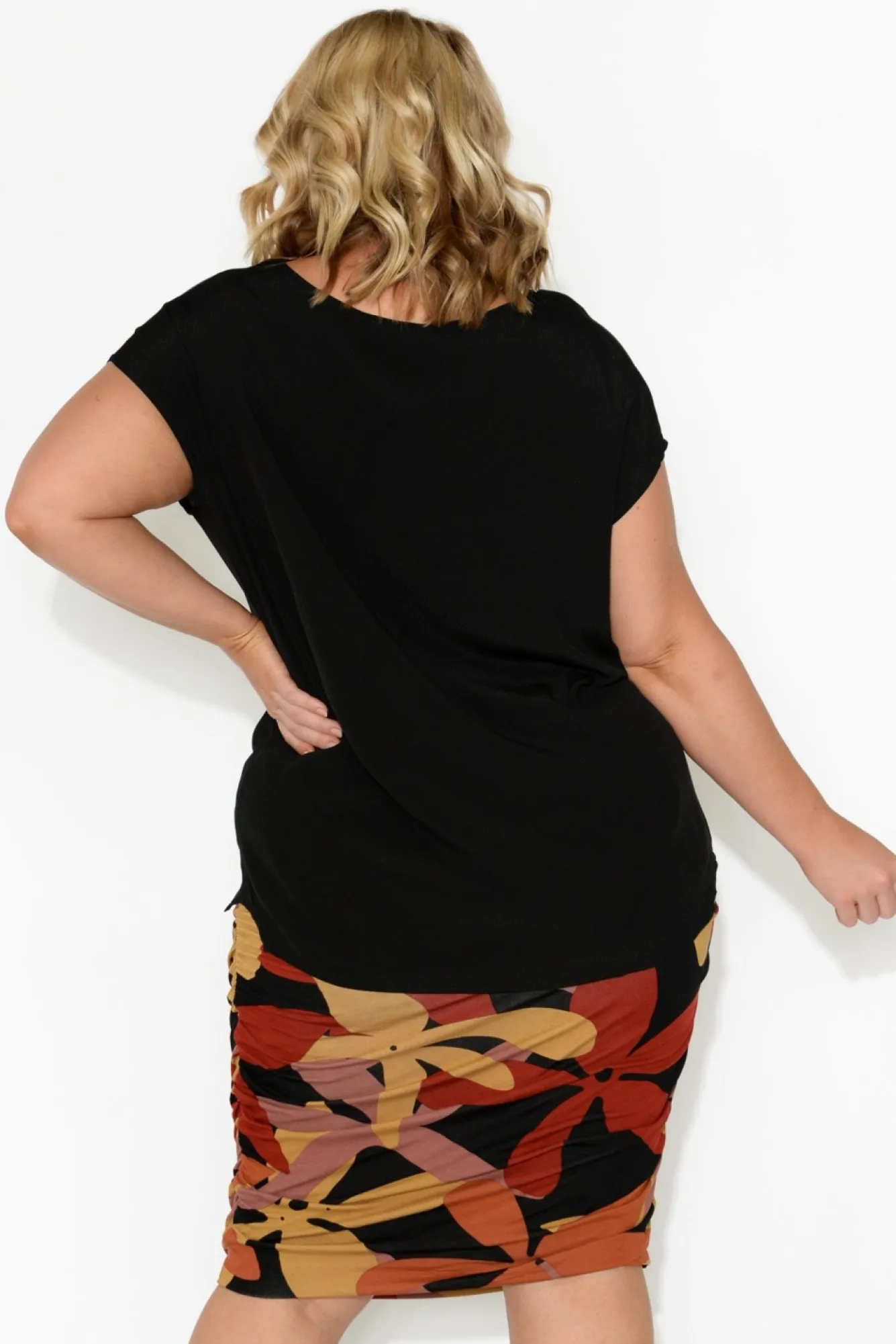 Fit: True. Refer To Size & Fit Tab Below For Specific Size Recommendation NNfabric: 100% RayonNlightweight, Airy And Breathable Non-Stretch FabricNround NecklineNshort SleevesNloose, Relaxed SilhouetteNflattering Hi-Lo HemNNcare: Cool Gentle Machine Wash RecommendedNNcolour: Classic Black Shade