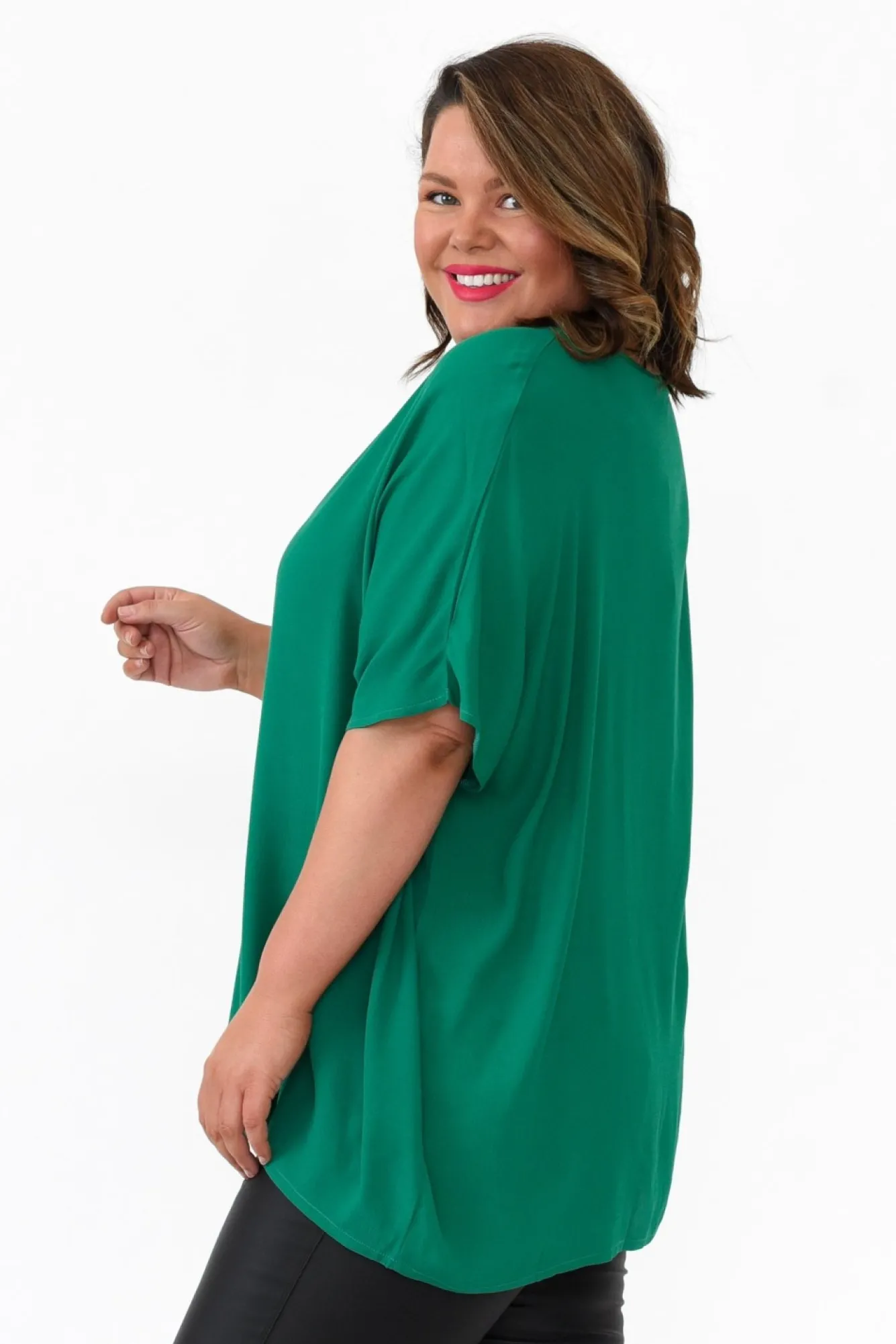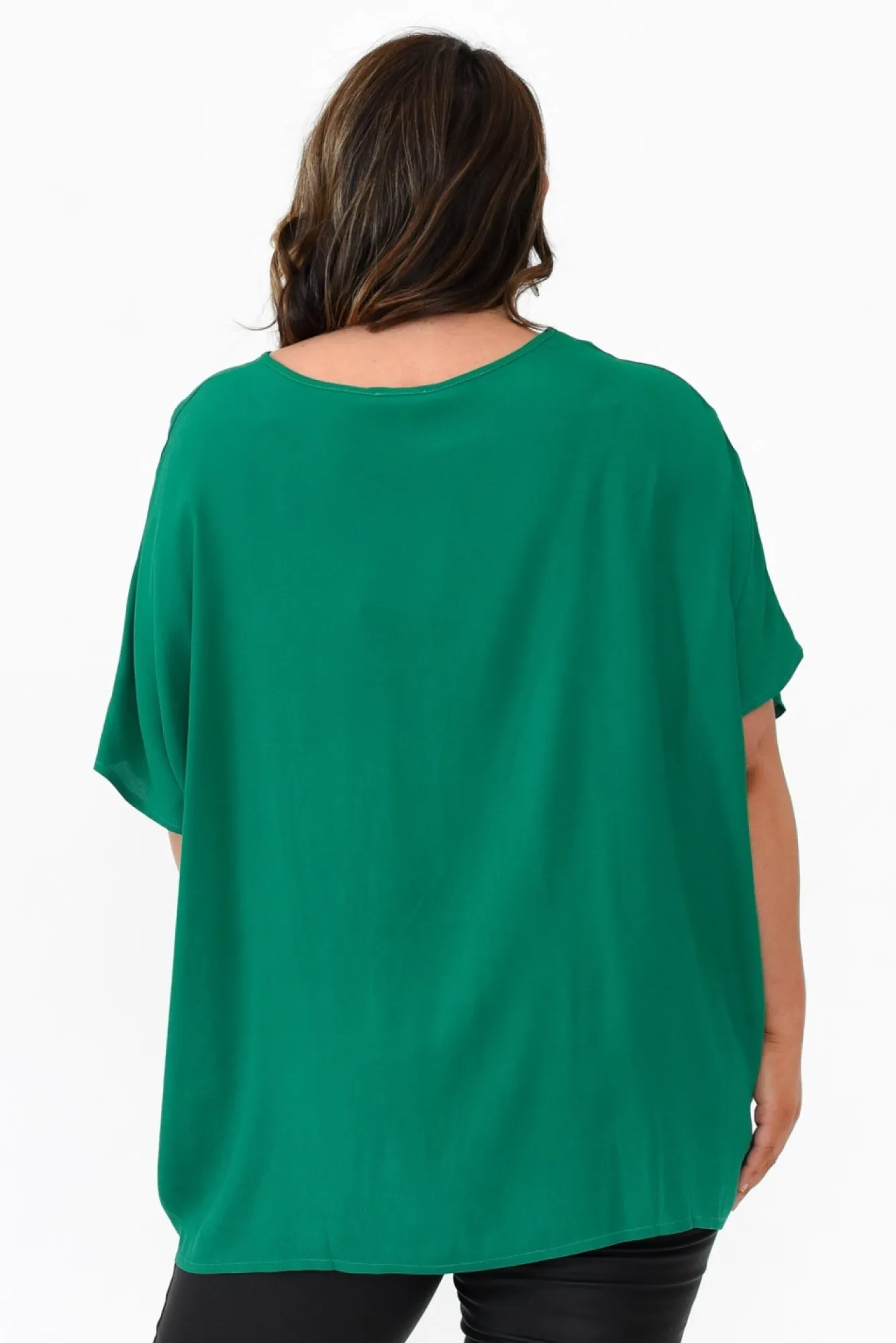 Fit: True To Size. Refer To Size & Fit Tab Below For Specific Size RecommendationNNfabric: 100% RayonNmade From Lightweight Rayon Fabric Designed With An Elevated Crepe Hand Feel Nclassic Round Neckline Enhances Versatility Ndraping 3/4 Length Sleeves For An Effortless LookNeasy-To-Wear Drape Silhouette Nreaches Below The Hips, Falling To An Asymmetric Hemline NNNcare: Cold Gentle Hand Wash RecommendedNNcolour: Deep Forest Green Shade