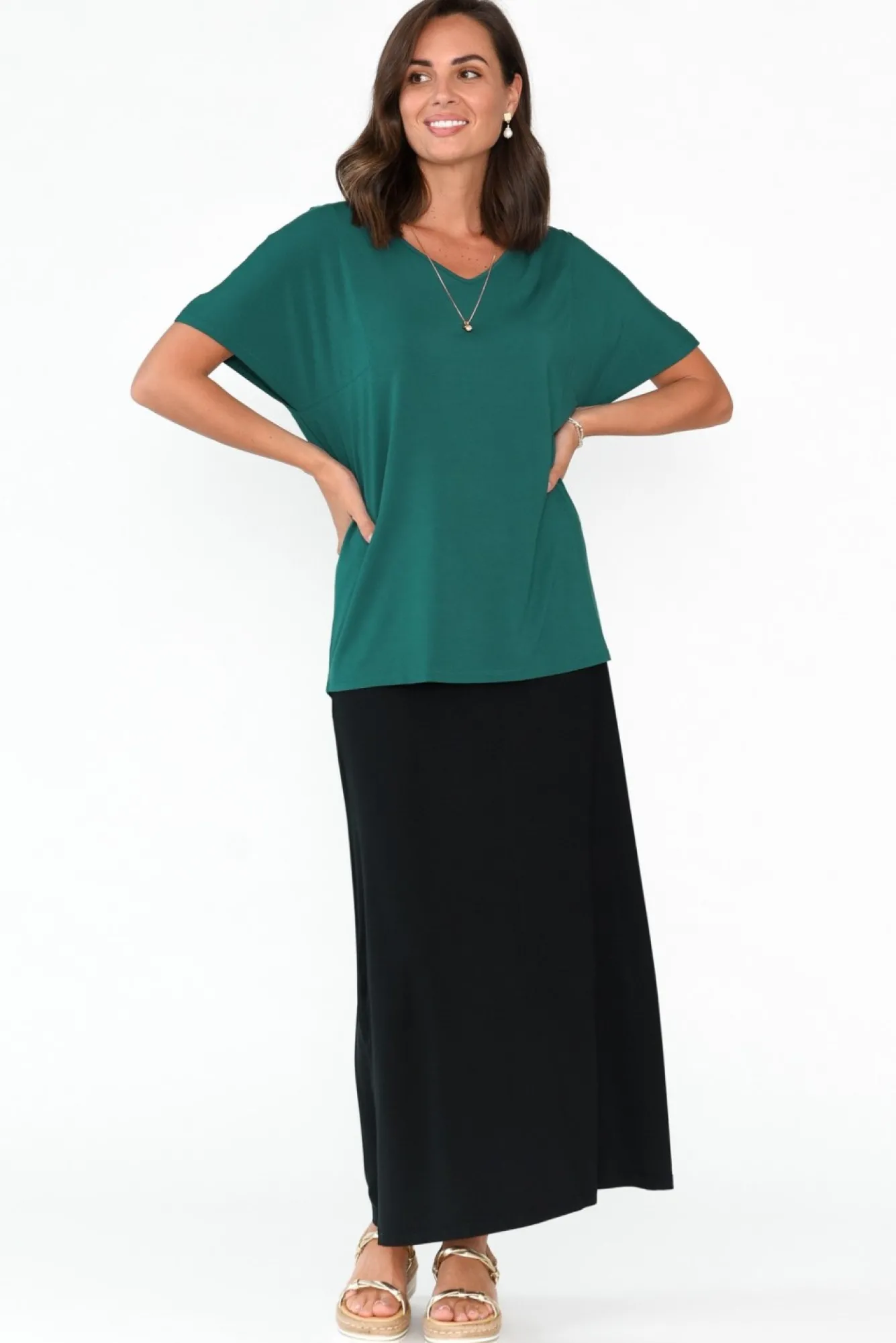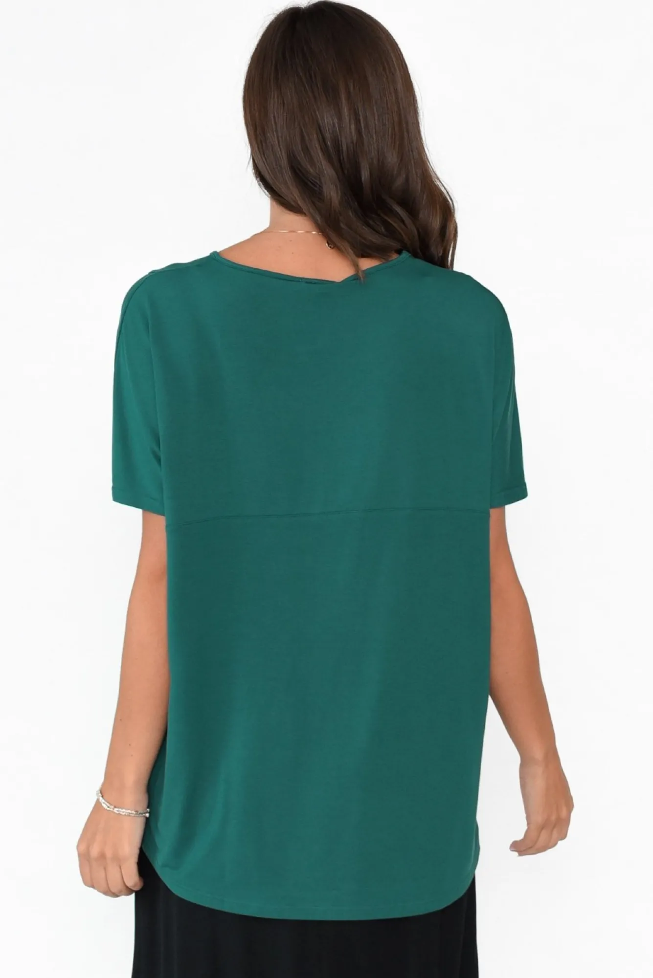 Fit: True To Size. Refer To Size & Fit Tab Below For Specific Size RecommendationNNfabric: 96% Micro Modal, 4% LycraNcrafted From Silky-Soft, Lightweight Micro Modal With Signature Breathability And Thermoregulating PropertiesNmade From Sustainably Sourced Beechwood Fibres Nsoft V-Neckline Complements The Short Sleeves NNstitching Detail At The Back And From Shoulder To Bust Nversatile Swing Silhouette With Horizontal Stitching At The Back Nslight Hi-Lo Hemline Falls Below The HipsNNcare: Cool Gentle Machine Wash RecommendedNNcolour: Deep Oceanic Teal Shade