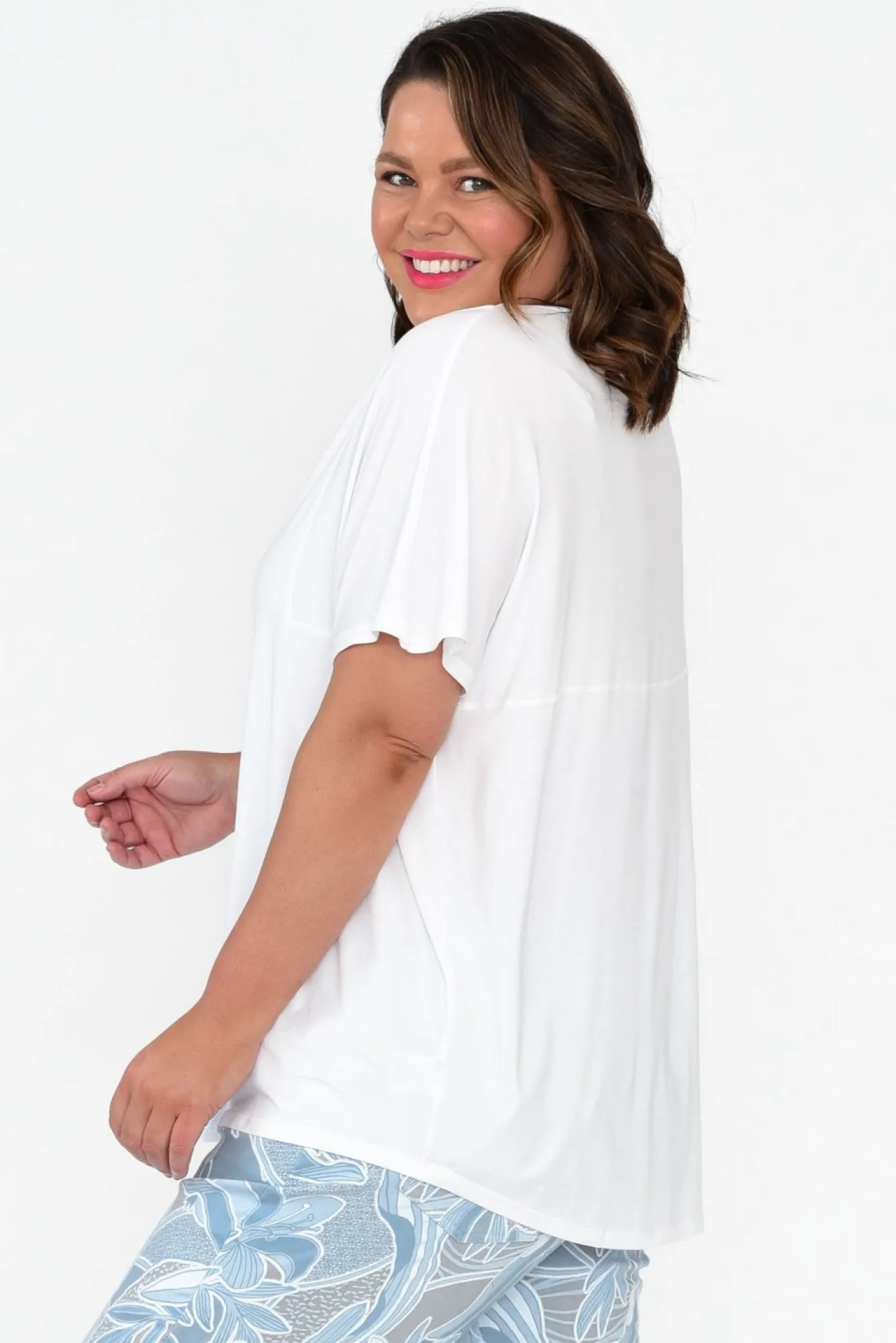 Fit: True To Size. Refer To Size & Fit Tab Below For Specific Size RecommendationNNfabric: 96% Micro Modal, 4% LycraNcrafted From Lightweight, Stretchy And Silky-Soft Micro Modal Fabric With Signature Thermoregulating Properties NNfabric Is Semi Sheer, We Recommend Pairing With Nude UndergarmentsNmade From Sustainably Sourced Beechwood Fibres Nclassic V-Neckline Complements The Short SleevesNNstitching Detail At The Back And At The Front From Shoulder To Bust Nrelaxed Swing SilhouetteNsubtle Hi-Lo Hemline Falls Below The HipsNNcare: Cool Gentle Machine Wash RecommendedNNcolour: Fresh White Shade