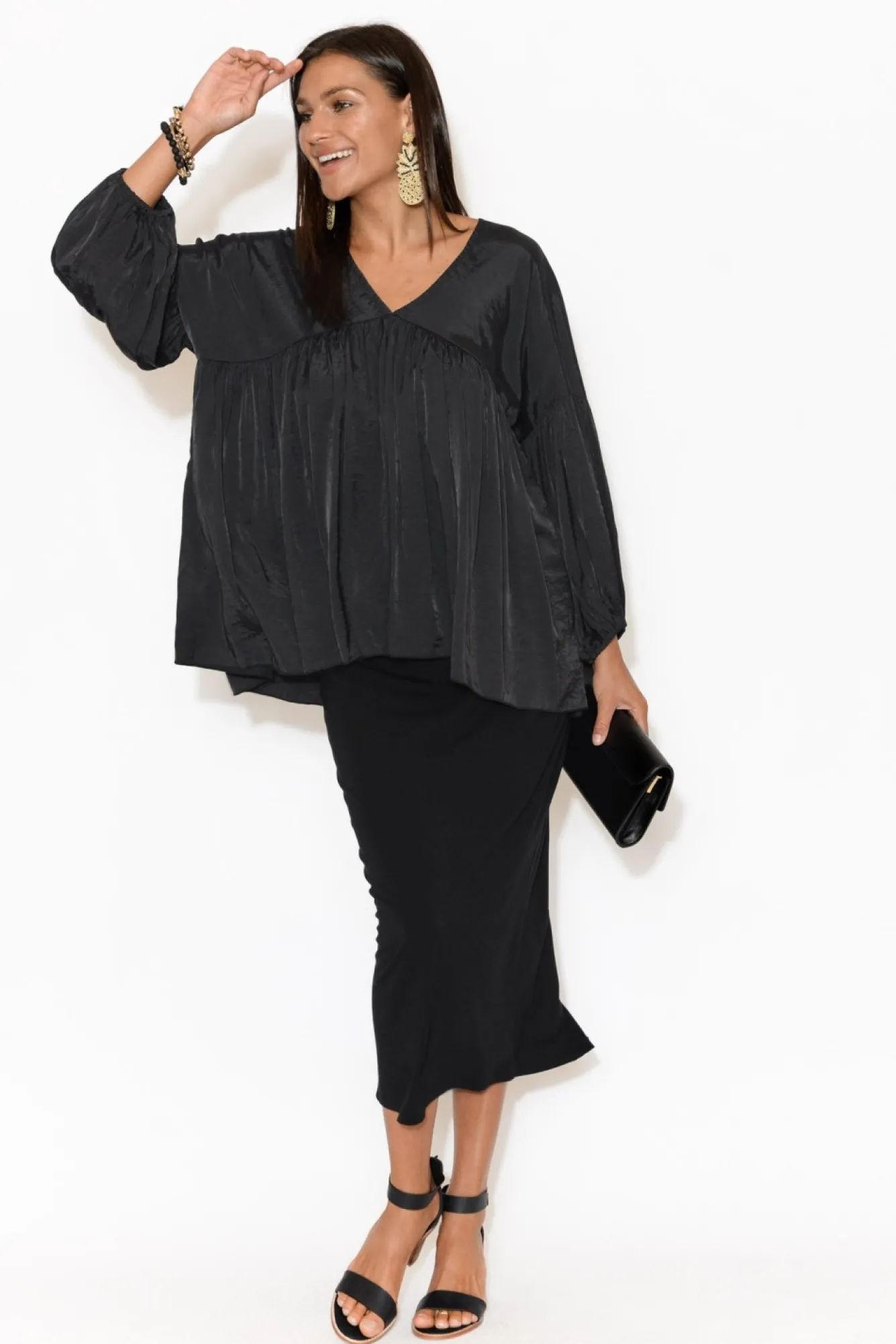 Be the first to review “Sleeved Tops<Tirelli Ebony Black Bamboo Blend Top” Cancel reply
