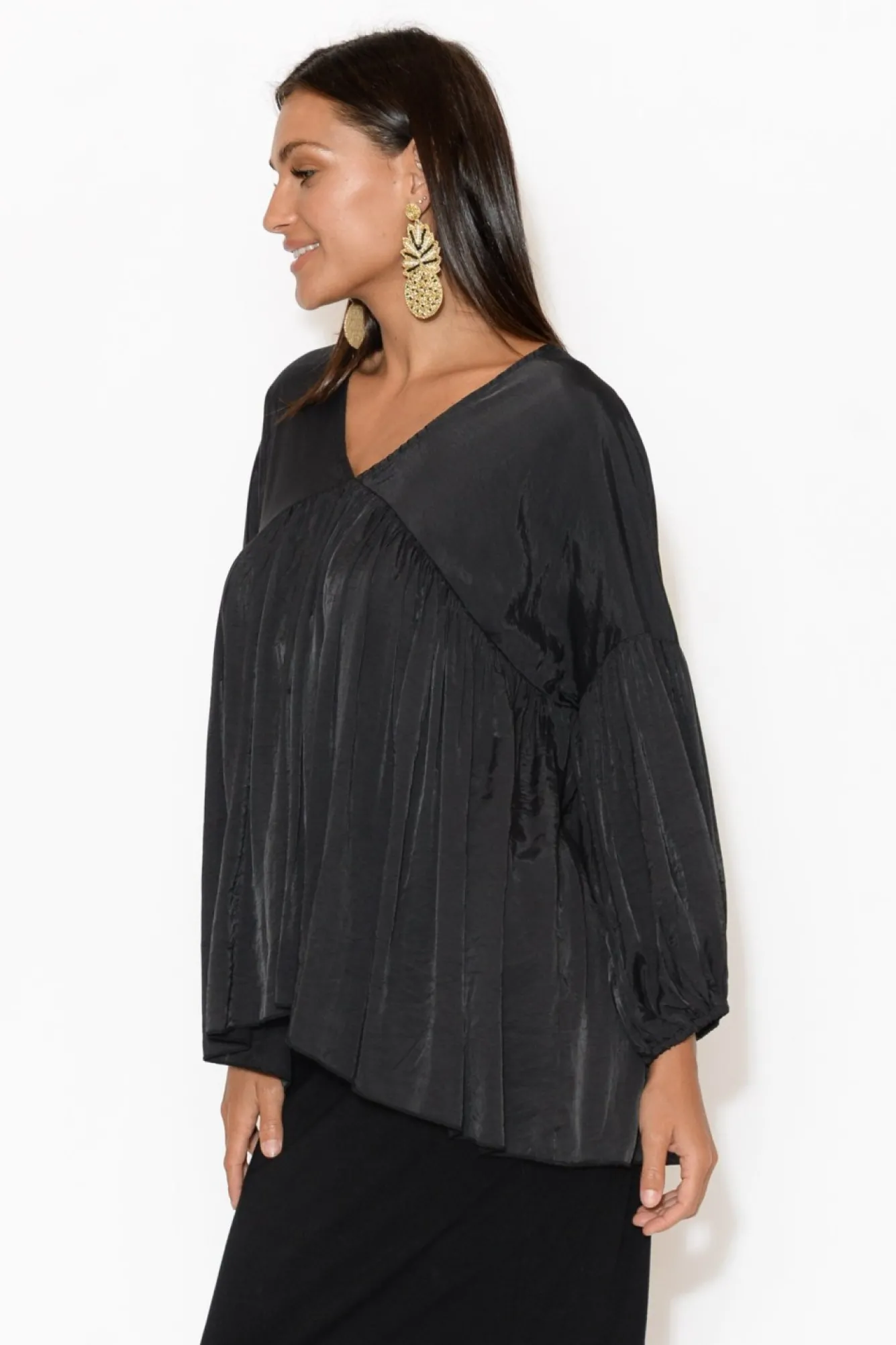 Fit: True. Refer To Size & Fit Tab Below For Specific Size Recommendation NNfabric: 50% Bamboo, 40% Nylon, 10% TencelNlight Weight, Silky, Non-Stretch FabricNv NeckNNfull Length Sleeve With Elastic CuffNNfloaty Swing SilhouetteNwide HemNhip Skimming Length NNNcare: Cool Gentle Hand Wash RecommendedNNcolour: Classic Black Shade