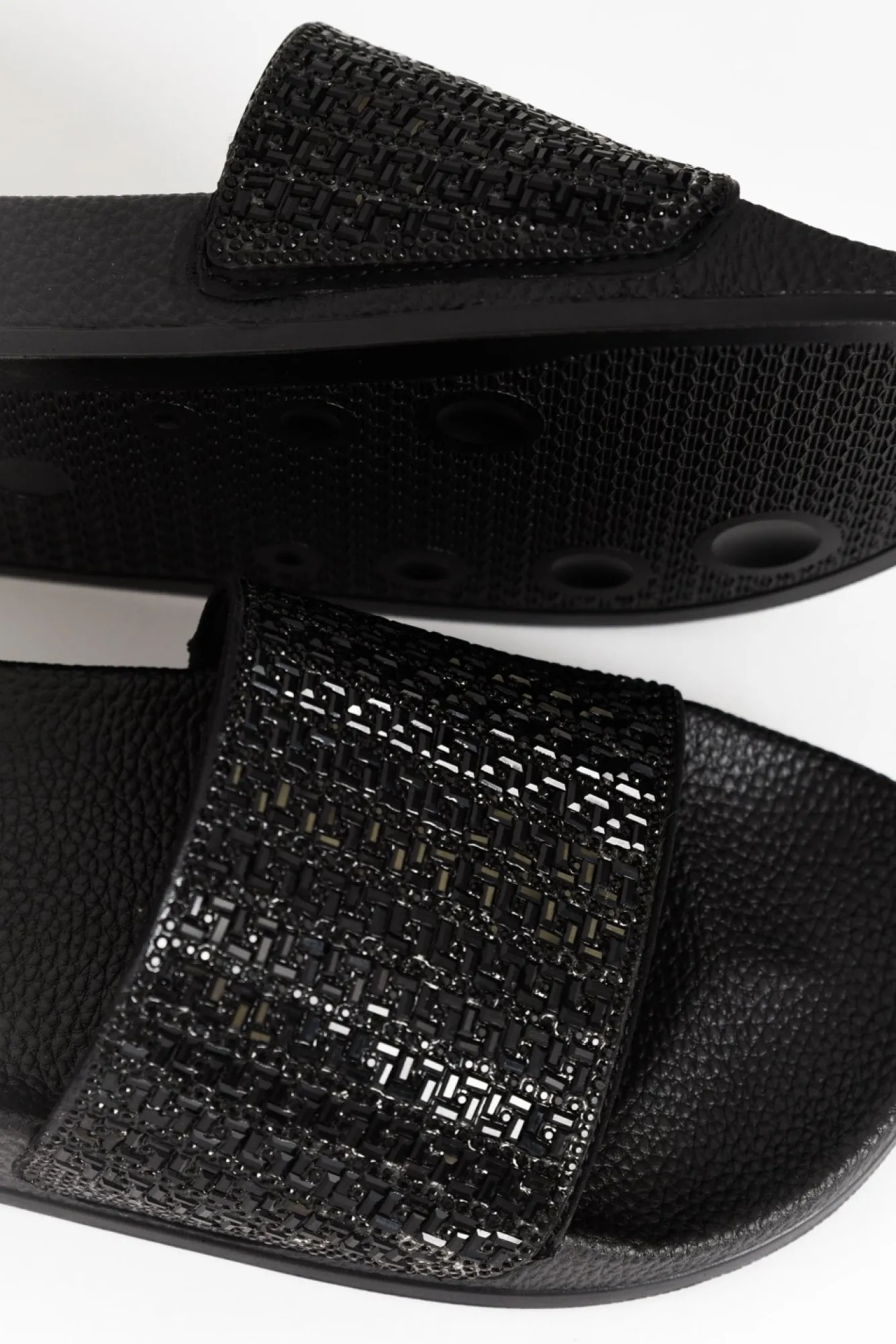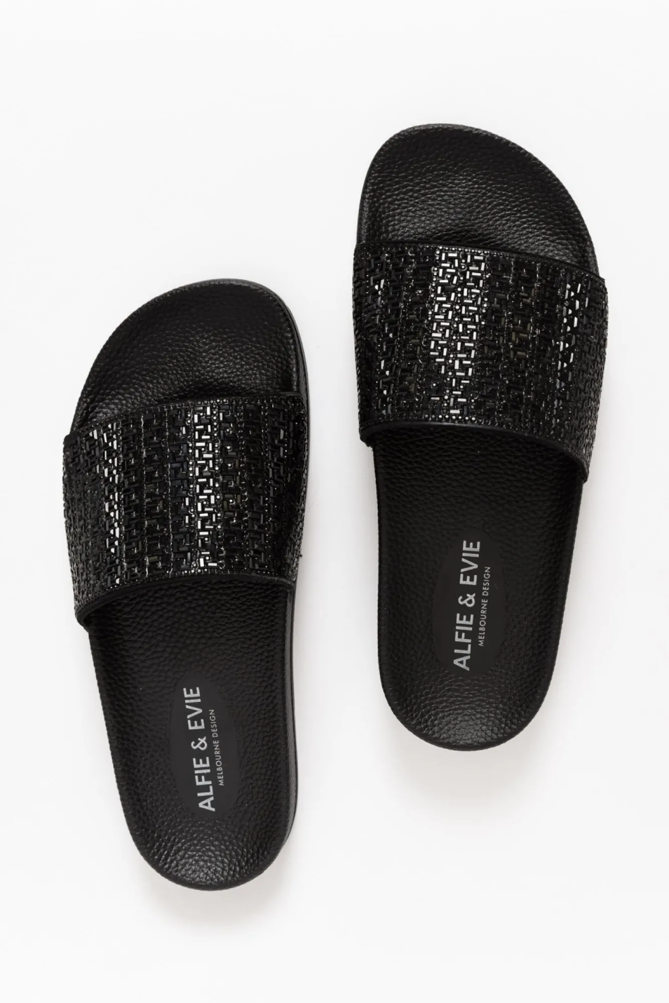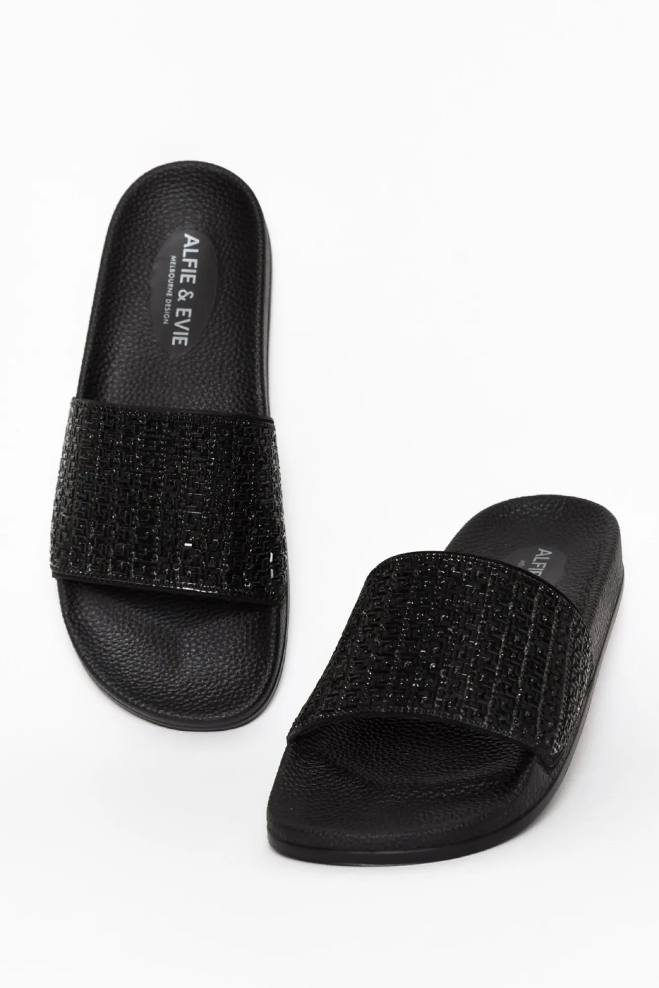Slides<Alfie And Evie Billie Black Diamante Slide