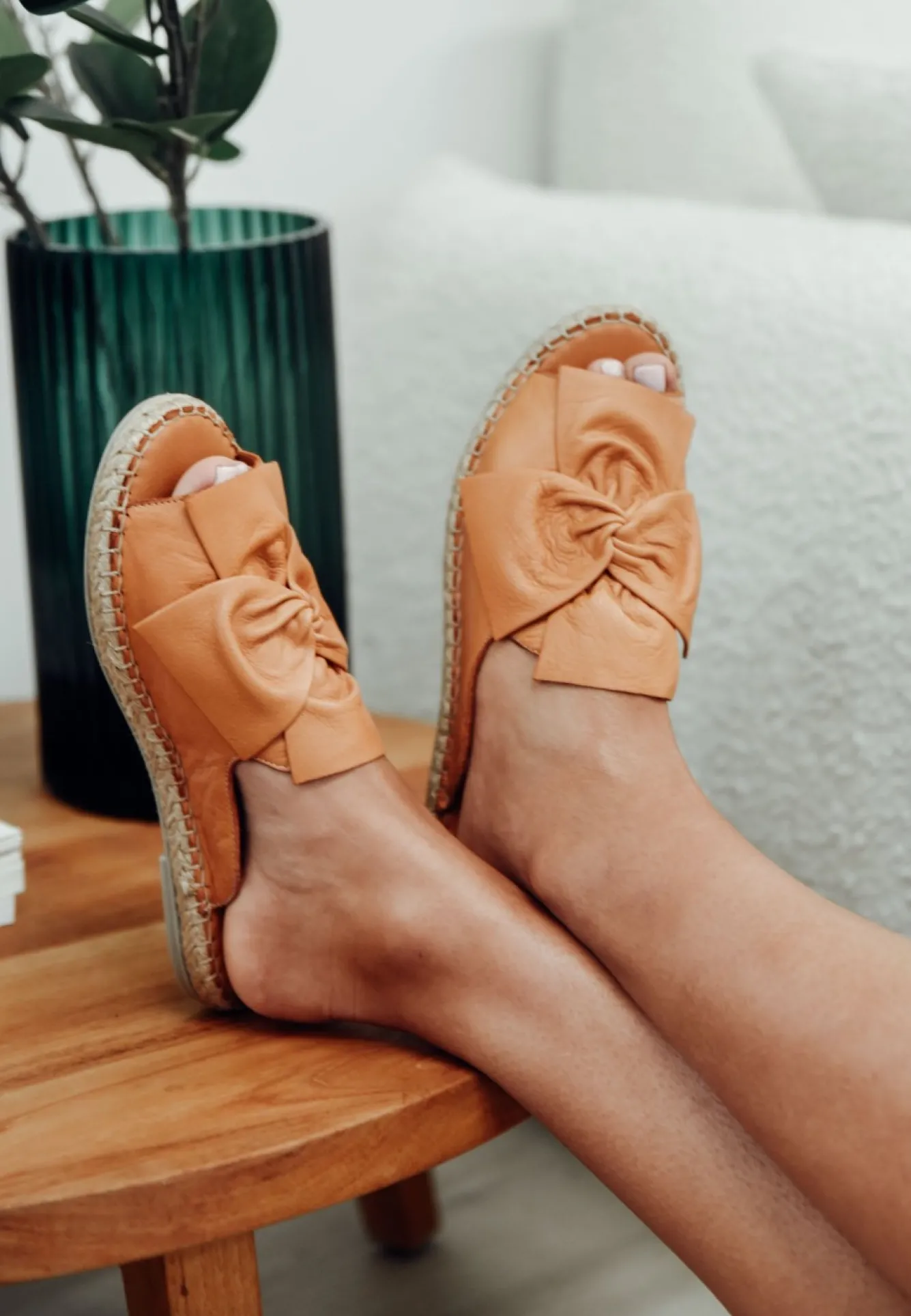 True To Size: Pick The Size You Would Normally BuyNNfit: StandardNsoft Brandy Upper With An Oversized Bow DetailNNeasy Slip On Comfy SlideNNpadded Footbed For All Day ComfortNNespadrille SoleNlightweight, Non-Slip And Flexible SoleNupper: LeatherNNlining: LeatherNsole: Man MadeNNheel Height: 2CmNNshoe Care:Use A Water And Stain Repellent Spray To Protect Before Wearing. To Clean, Use A Damp Cloth And Polish Afterwards.