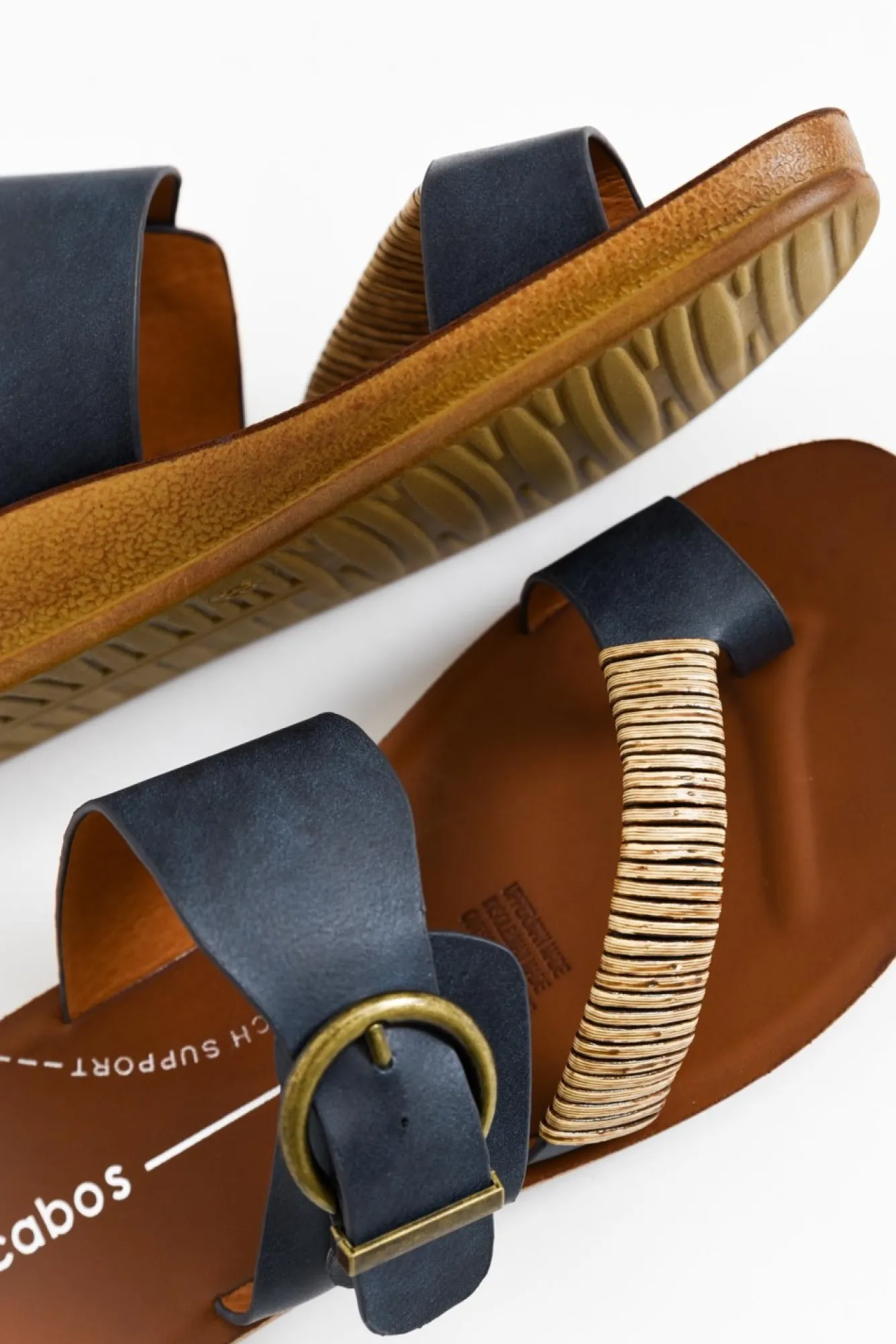 True To Size: Pick The Size You Would Normally BuyNNfit: Narrow – WideNNstep Into Comfort This Summer With This Easy Slip-On SlideNadjustable Buckle Closure On The Bridge Strap Suitable For A Narrow To Wide FootNclassic Toe-Ring Design With Coconut Effect DetailingNmoulded Footbed For That Instant Ultra Luxurious Worn-In Feel And Built-In Arch Support NNslightly Elevated Heel Provides Extra Support To The FootNlightweight And Non-Slip Sole For Protection Against Slips And TripsNupper: Non LeatherNNlining: Non LeatherNsole: Man MadeNNheel Height: 2CmNcolour: Versatile Navy Blue Straps With A Tan FootbedNshoe Care: Use A Water And Stain Repellent Spray To Protect Before Wearing. To Clean Use A Damp Cloth And Spot Clean.