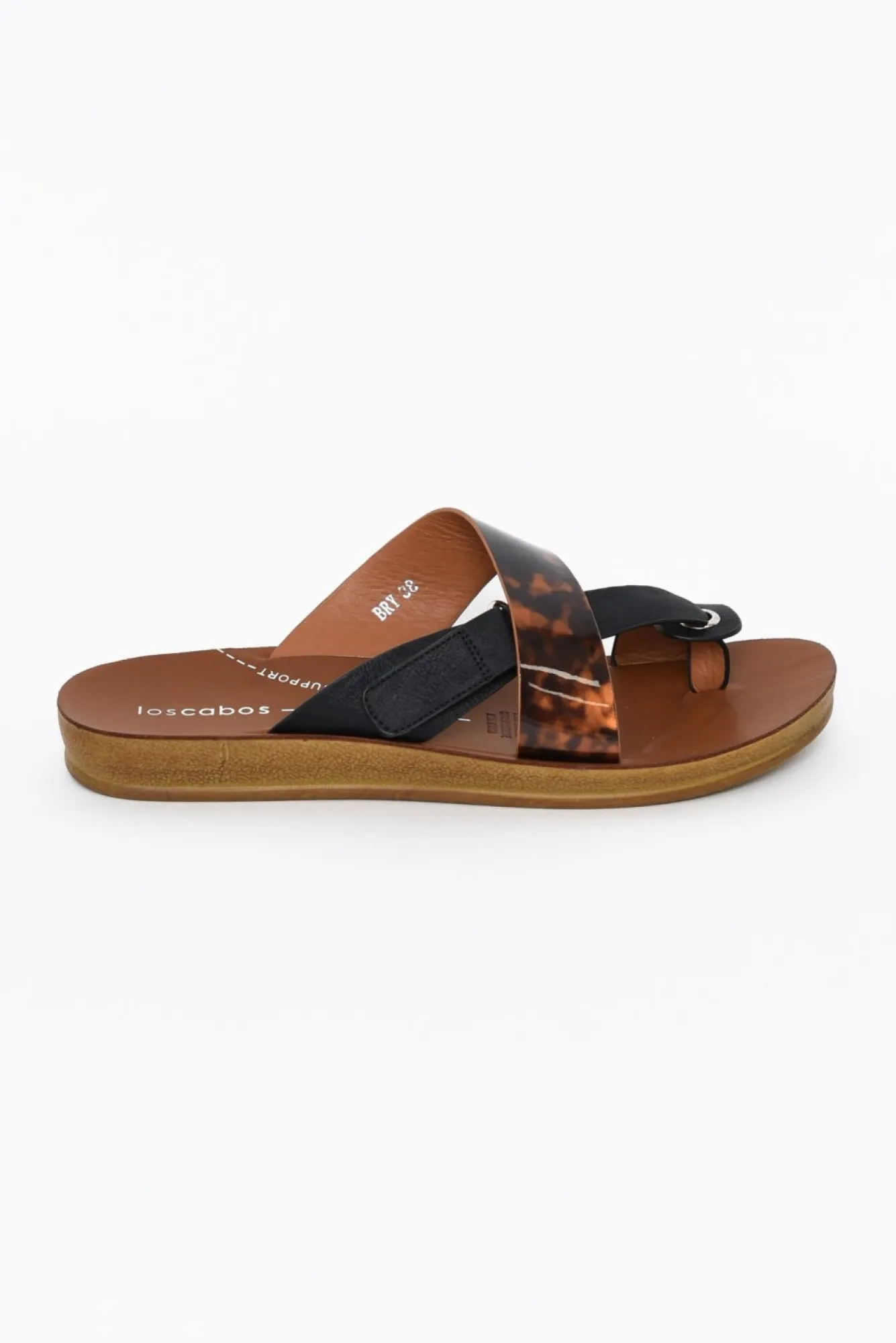 True To Size: Pick The Size You Would Normally Buy NN Fit: Narrow – StandardNeasy Slip-On Style Designed With Comfort And Support FeaturesNclassic Toe-Ring Design With Two Crossover Straps Nvelcro On The Outside Strap Offers A Personalized Fit Nmoulded Footbed With Inbuilt Arch Support For That Instant Ultra Luxurious Worn-In FeelNslightly Elevated Heel Provides Extra Support To The FootNlightweight And Non-Slip Sole For Protection Against Slips And TripsNNupper: Man-MadeNNlining: Man-MadeNsole: Man-MadeNheel Height: 2.0CmNcolour: Contrast Black And Tortoise Shell Design With A Soft Brown Base Nshoe Care: Use A Water And Stain-Repellent Spray To Protect Before Wearing. To Clean Use A Damp Cloth And Spot Clean.