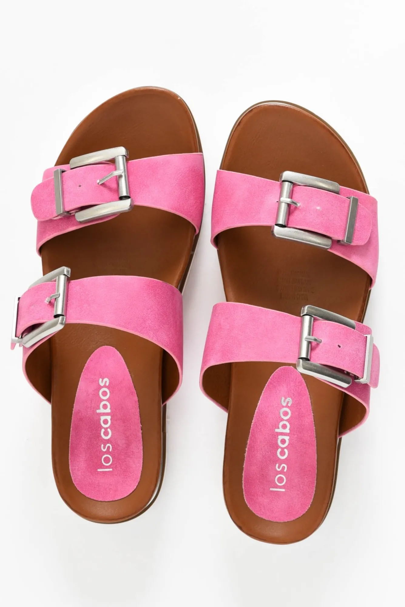 True To Size: Pick The Size You Would Normally BuyNNfit: Narrow- WideNeasy Slip On Summer Slide That Adds A Fun Pop Of Colour To Any Outfit!Nstatement Platform BaseNNclassic Double Strap Design With Adjustable Buckles To Fit A Narrow To Wide FootNcomfortable Cushioned Footbed With A Slight Curve At The Arch For Support And A Worn-In FeelNtextured Sole For Stability And Slip PreventionNpink Los Cabos Branding On The Heel Of The Footbed Nupper: Man MadeNNlining: Man MadeNsole: Man MadeNheel Height: 4CmNcolour: Hot Pink Straps With A Faux Nubuck Leather Look, A Tan Footbed And A White SoleNshoe Care: Use A Water And Stain Repellent Spray To Protect Before Wearing. To Clean Use A Damp Cloth And Spot Clean.