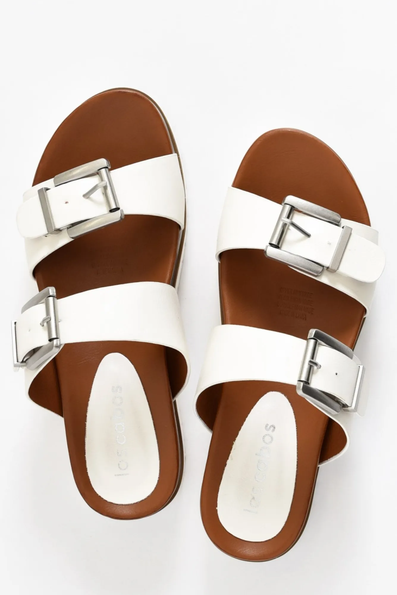True To Size: Pick The Size You Would Normally Buy NN Fit: Narrow – Wide Ncomfortable Summer Slide With An Easy To Slip On Design And A Statement Platform BaseNNclassic Double Strap Design With Adjustable Buckles To Fit A Narrow To Wide FootNmoulded Footbed With A Slight Curve At The Arch For Support And A Worn-In FeelNtextured Platform Sole For Stability And Slip PreventionNwhite Los Cabos Branding On The Heel Of The Footbed Nupper: Man MadeNNlining: Man MadeNsole: Man MadeNheel Height: 4CmNcolour: Versatile White Straps With A Tan Footbed And A White SoleNshoe Care: Use A Water And Stain Repellent Spray To Protect Before Wearing. To Clean Use A Damp Cloth And Spot Clean.