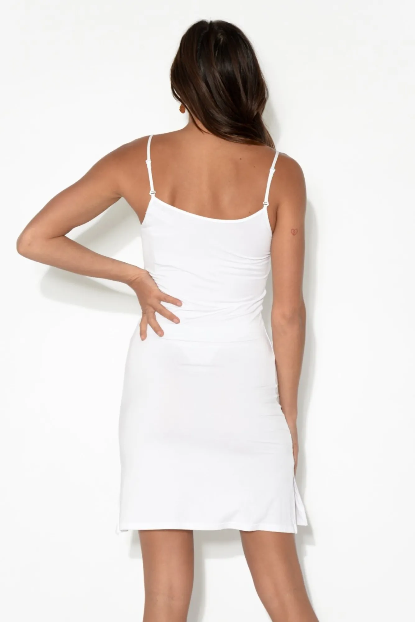 Fit: True. Refer To Size & Fit Tab Below For Specific Size Recommendation NNfabric: 96% Micromodal®Air, 4% LycraNlightweight, Ultra-Soft And Stretchy Micro Modal Fabric Made From Sustainably Sourced Beechwood FibresNcurved NecklineNadjustable Spaghetti StrapsNstraps Can Be Crossed Over For Razorback StylesNsleevelessNmid-Thigh LengthNshort Side Seam Splits For Ease Of MovementNstraight HemlineNNcare: Cool Gentle Machine Wash RecommendedNNcolour: Classic White