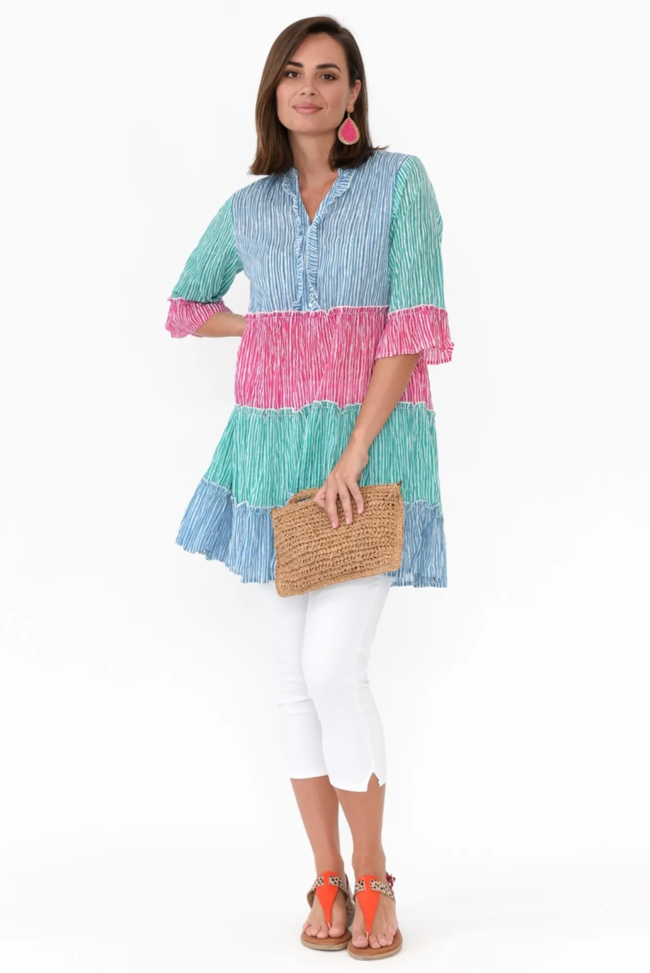 Fit: True To Size. Refer To Size & Fit Tab Below For Specific Size Recommendation NNfabric: 100% CottonNlightweight, Breathable And Crinkle Textured FabricNNfrill Neckline With Buttons Down The ChestNNthree Quarter Length Frill SleeveNa-Line Silhouette Accentuated By Frilled TiersNtunic Length Hemline Falls Below The Hips, Offering Great CoverageNNcare: Cool Gentle Hand Wash RecommendedNNcolour: Block-Colour Tiers With A Striped Design NNfabric Tip: Store It Rolled Up Either In The Wardrobe Or In Your Suitcase To Keep The Crinkle Alive!
