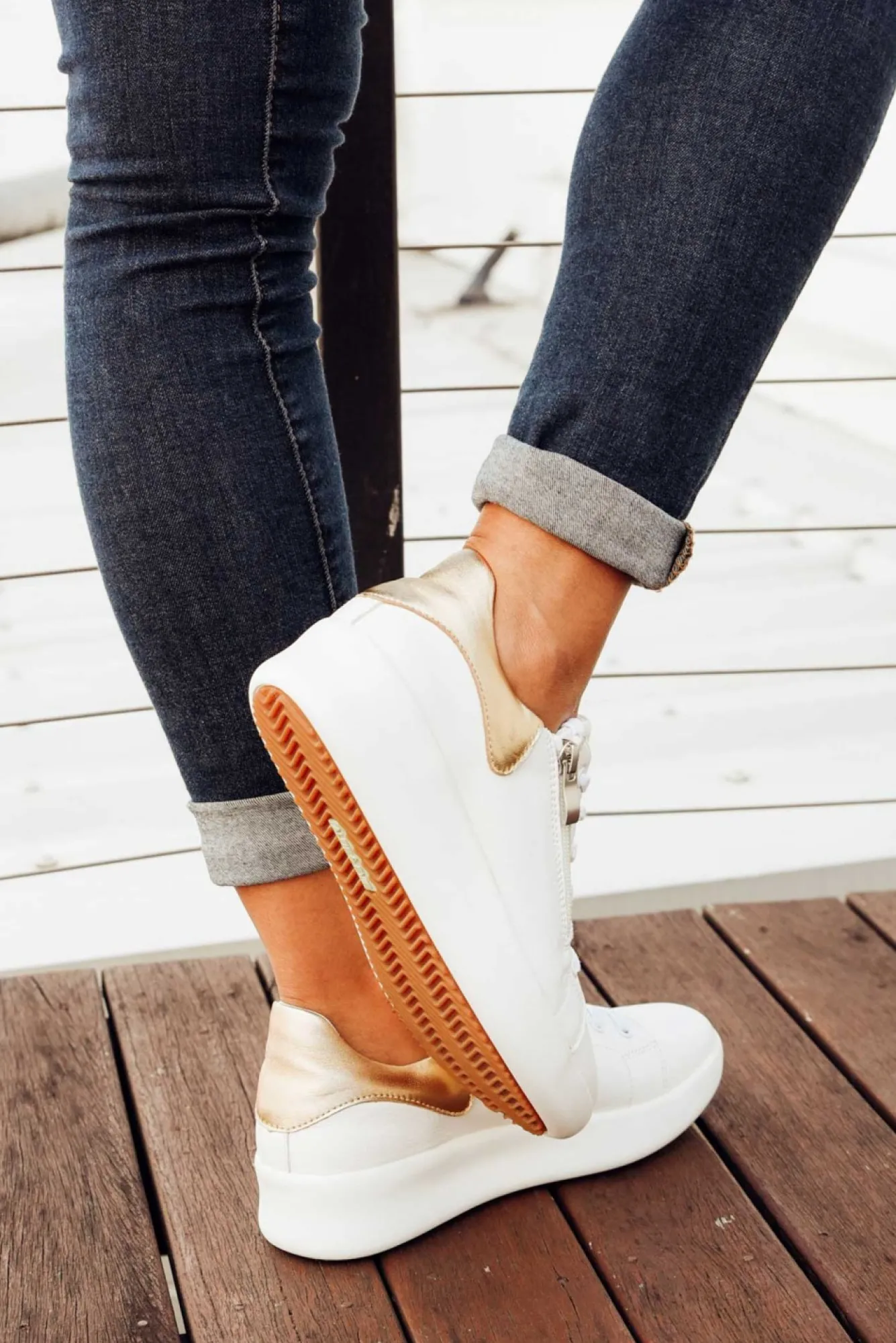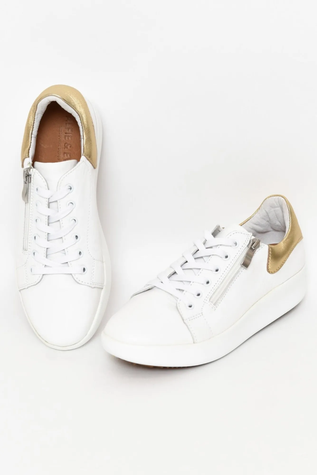 True To Size: Pick The Size You Would Normally BuyNNfit: Standard – WideNstylish Platform Sneaker Designed With Luxurious White LeatherNmetallic Gold Strip Highlighting The HeelNzipper Alongside White Laces Making These Super Easy To Slip OnNorthotic-Friendly Padded Insole Ncorrugated Sole Prevents SlippingNNupper: LeatherNNlining: LeatherNsole: SyntheticNheel Height: 4CmNNshoe Care: Use A Water And Stain Repellent Spray To Protect Before Wearing. To Clean, Use A Damp Cloth And Polish Afterwards.