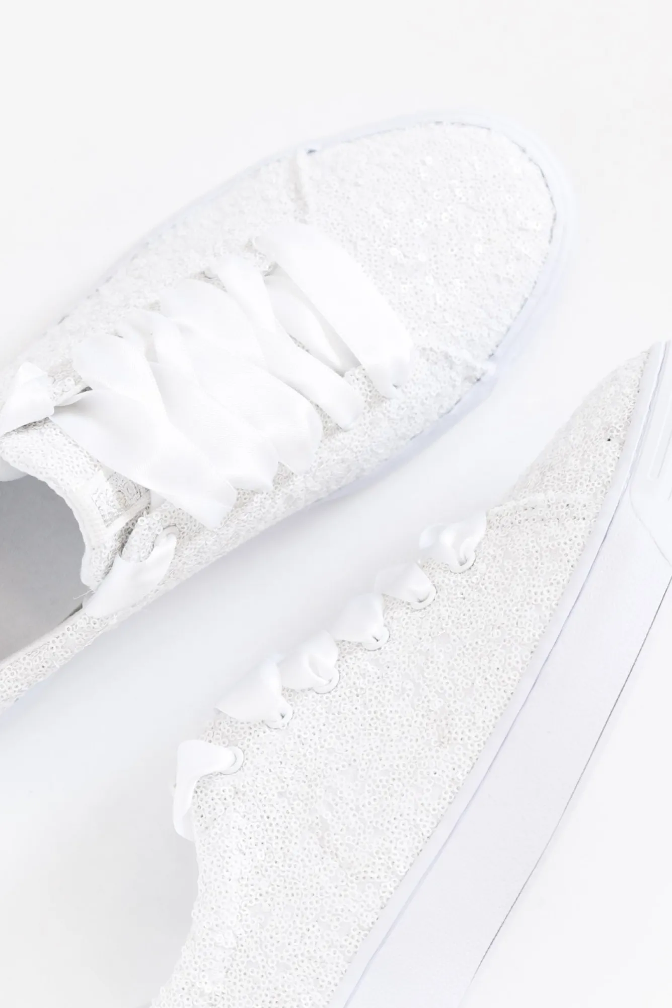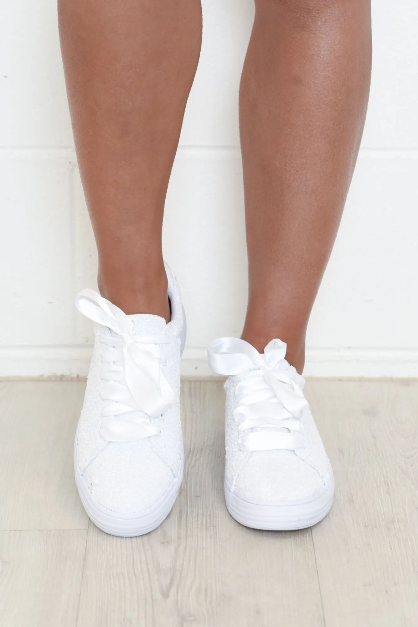 True To Size: Pick The Size You Would Normally Buy NN Fit: Standard Nadd A Sparkly Twist To Any Outfit With These Gorgeous White Sequined Sneakers Nwhite Ribbon Style Laces With White Eyelets Nfully Sequined Exterior Nwhite Strip Heel Detail With Diamante Stud In CentreNfixed Softerraa„¢ Footbed For All-Day ComfortNthick Sole With Corrugated Grooves To Enhance GripNupper: TextileNNlining: TextileNNsole: SyntheticNNheel Height: 3Cm NNshoe Care:Spot Clean Recommended
